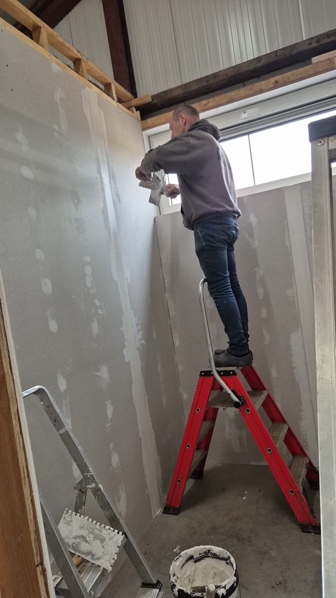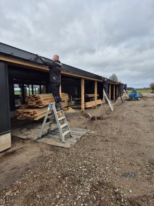 We openen een kinderdagverblijf in onze oude kapschuur, dat houd in dat alleen de spanten blijven staan, en de rest er uit is gesloopt en alles gloednieuw is opgebouwd.